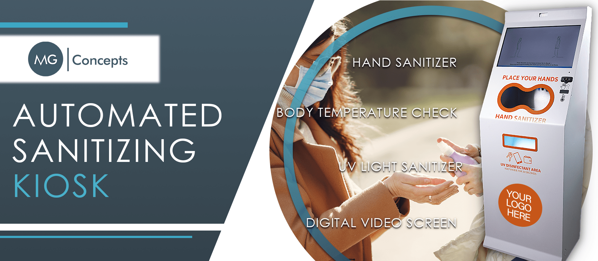 Non-contact automatic disinfectant kiosks that keep hands, phone & keys clean & sanitized.